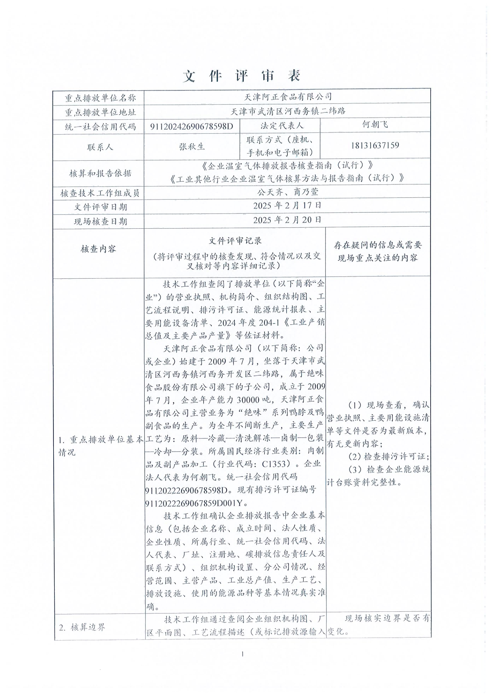 天津阿正食品有限公司碳核查结果公示